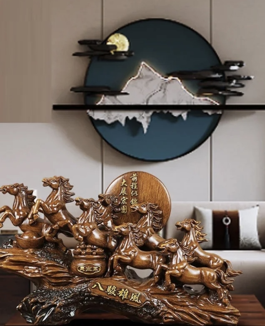 Разместите картину или статуэтку с восемью конями в Южном или Юго-Западном секторе (зона славы и богатства).