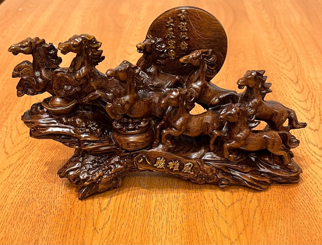 Восемь коней успеха (8 лошадей) на подставке. Символ Фен-Шуй.