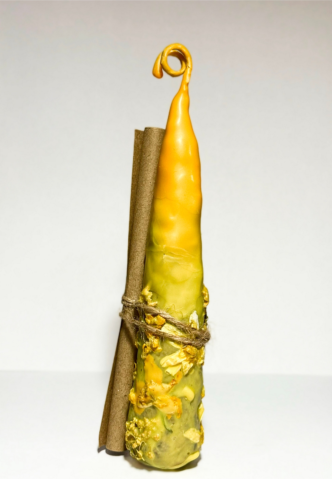 В отличии от обычных свечей эта свеча горит благодаря травам, поэтому готовьтесь увидеть маленький факел, обильное выделение дыма и почувствовать аромат магических трав. При сгорании весь негатив нейтрализуется, растворяясь в пламени. Свечи изготовлены вручную в полную фазу Луны.
