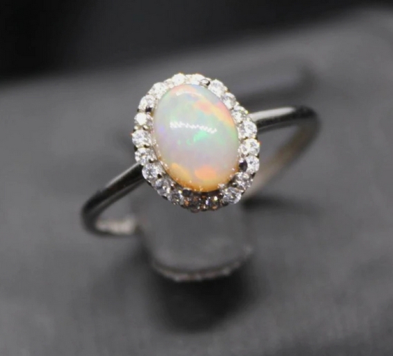 Кольцо опал огненный с фианитами, безразмерный