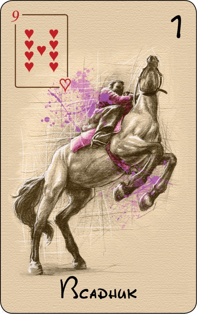 В основе колоды Оракул Ленорман "Бриллиантовое сердце" лежат авторские изображения. На каждой карте указано ее название и приведена соответствующая карта игральной колоды.