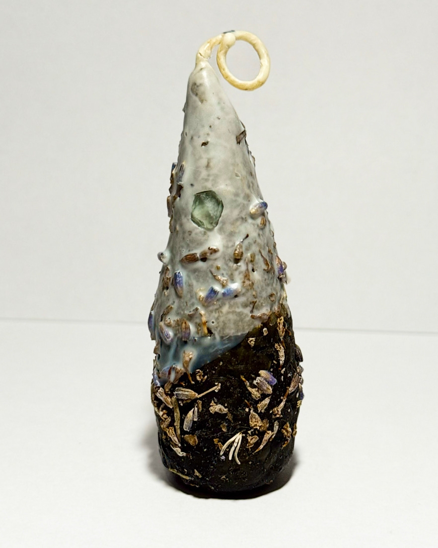 Состав: 100% пчелиный воск, полынь, шалфей, лаванда, масло лаванды, флюорит.