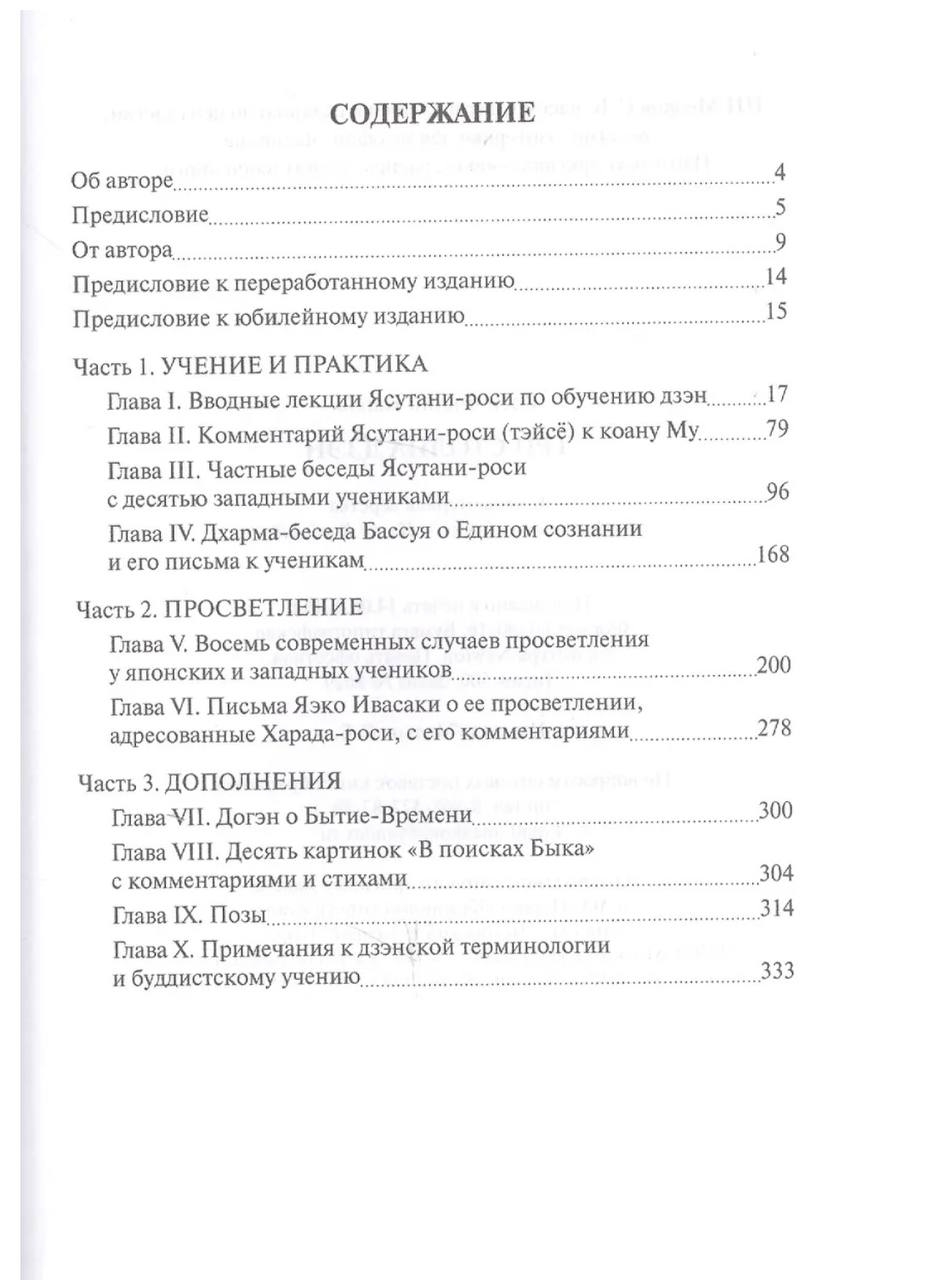 Дзен — не набор предписаний, это сама беспредельность. Предлагаемая читателю книга содержит лекции и частные беседы просветленных мастеров дзен современной Японии о тонкостях практики дзен. В книге также излагаются восемь современных случаев просветления их японских и западных учеников с подробными описаниями внутренних состояний, испытываемых человеком в момент подлинного "пробуждения".