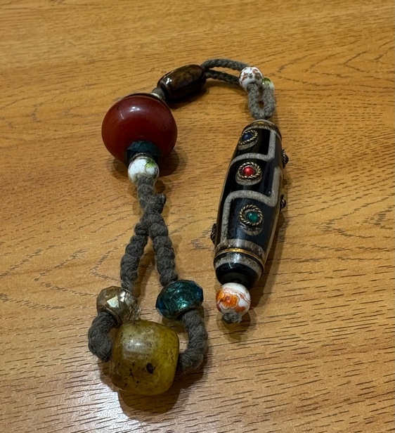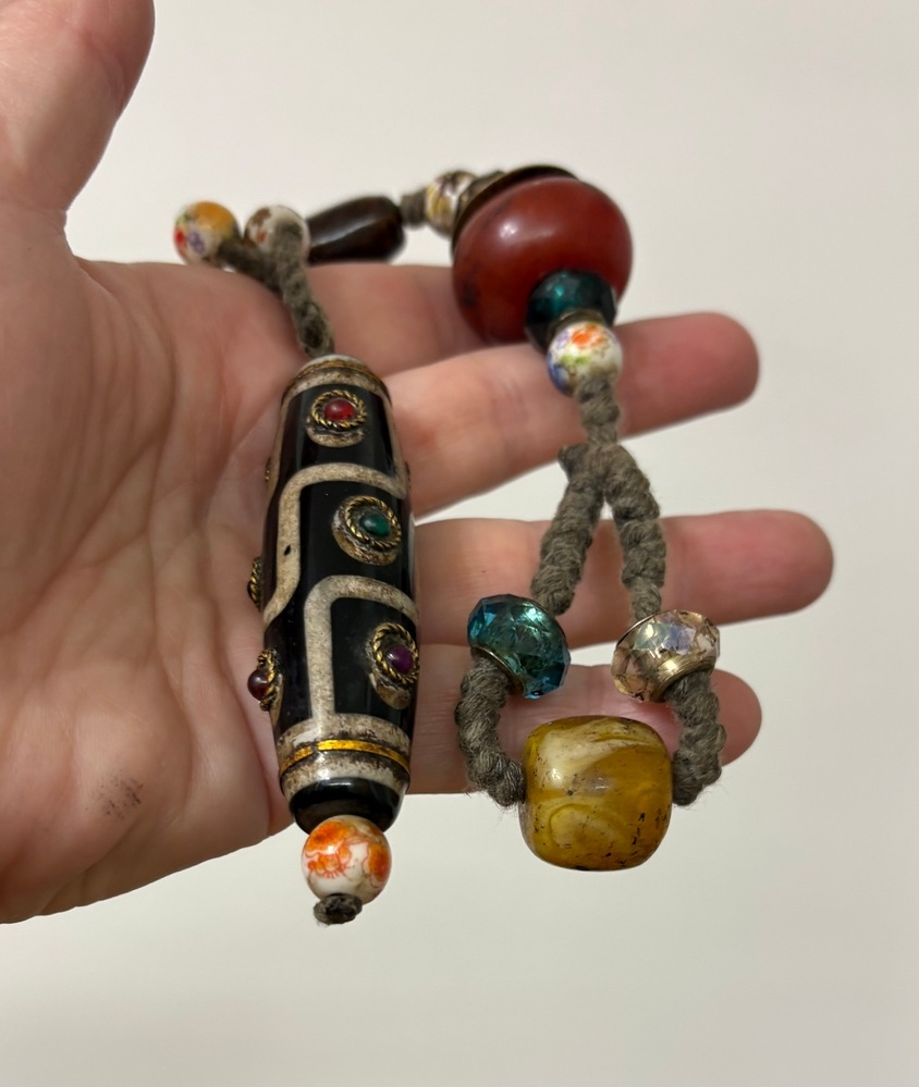 - Антикварная Бусина Дзи 9 глаз с инкрустацией. Амулет