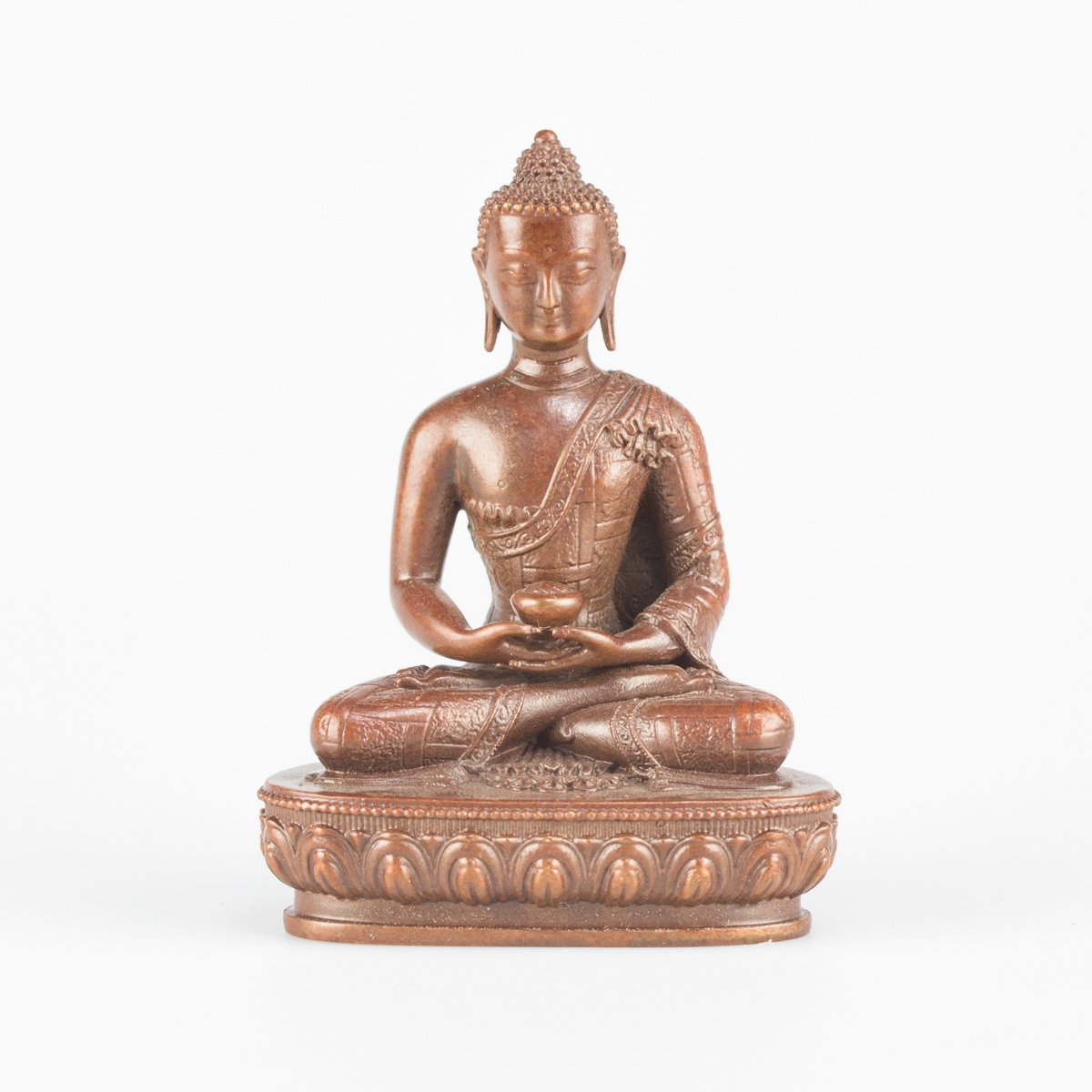 Изображения Будды Амитабхи очень похожи на изображения Будды Шакьямуни, так как оба обычно изображаются с атрибутами "достигшего Пробуждения", сидящими в позе медитации. Будда Амитабха держит в руках чашу с нектаром высшей радости. Его тело красного цвета, что символизирует трансформацию мешающего чувства привязанности,желания в различающую мудрость.Также в тибетском буддизме красный цвет олицетворяет любовь, сострадание и эмоциональную энергию.